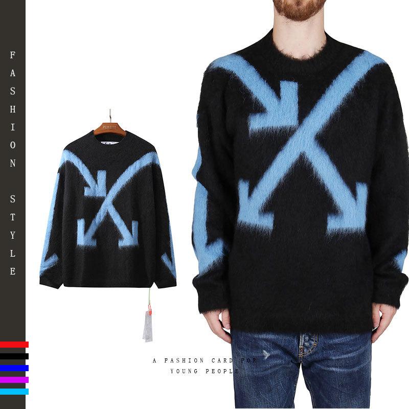 【Off-White】モヘアアローセータールーズロングスリーブカジュアルプルオーバーセーター男性と女性のための同じスタイル