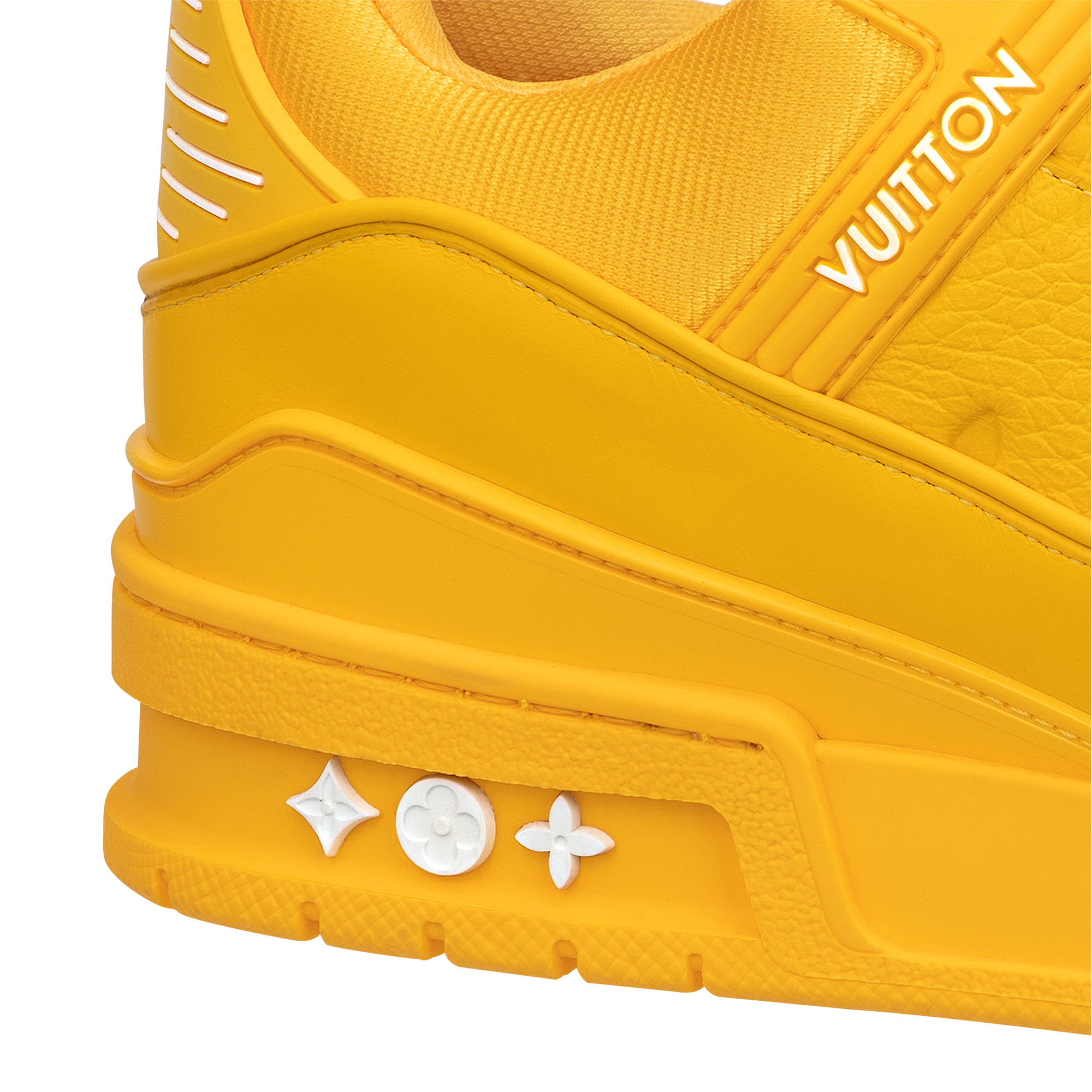 モノグラム・フラワー モチーフが彩りを添えるラバーアウトソールと、同系色にしたアッパーで、装いにカラーブロックの雰囲気を添えます。