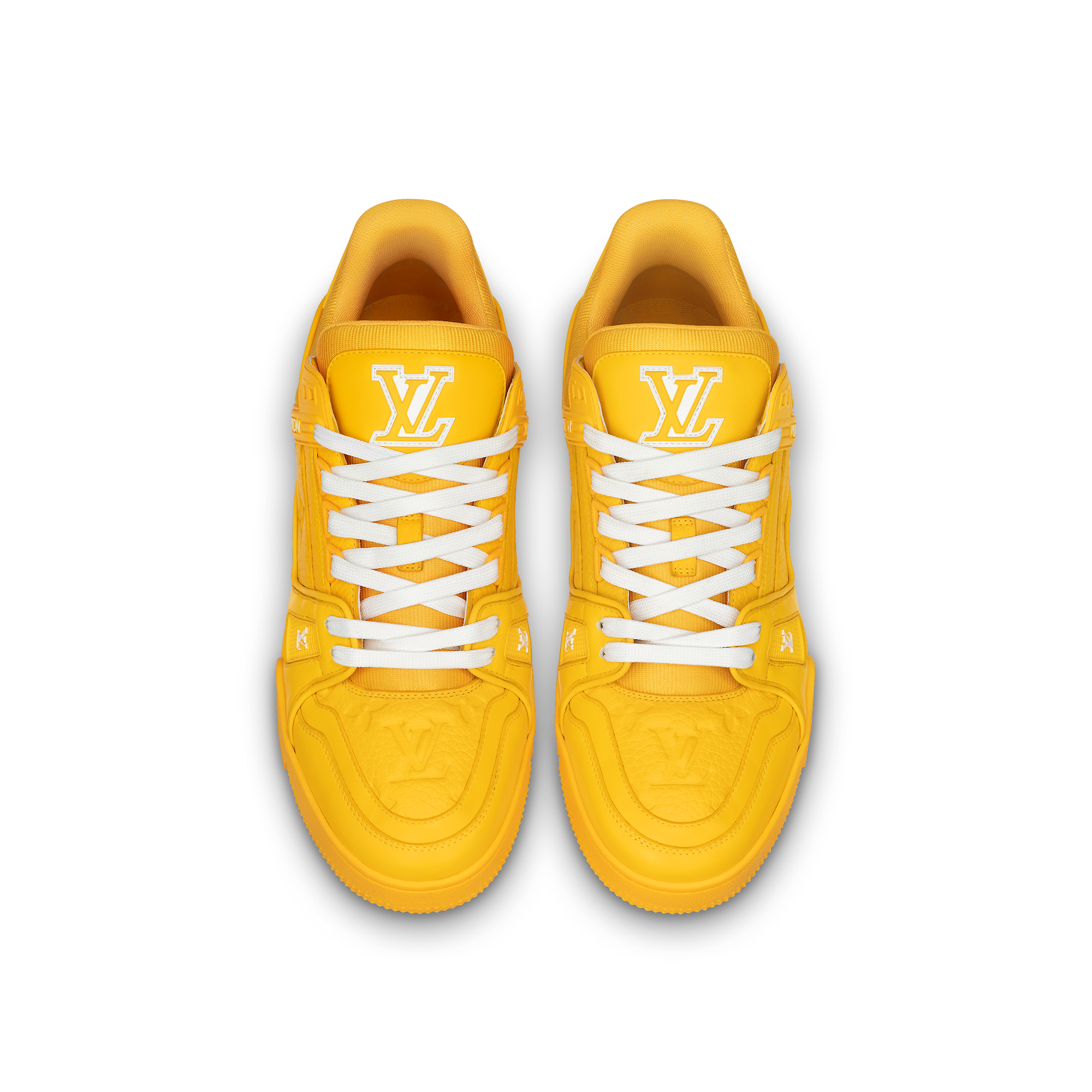なめらかなカーフレザーと、ルイ・ヴィトンを象徴するモノグラム・パターンをエンボス加工したグレインカーフレザーを組み合わせた「LV トレイナー・ライン スニーカー」。