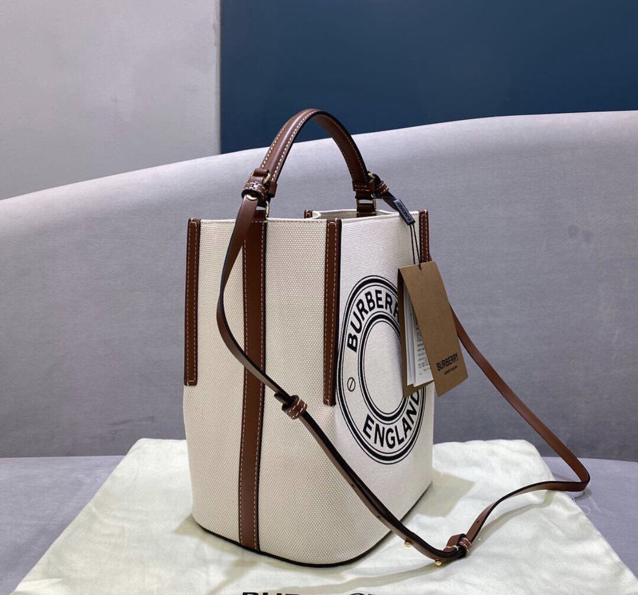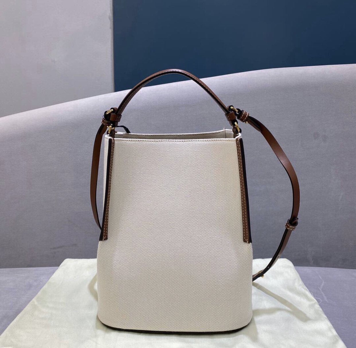 乗馬スタイルにインスパイアされたコットンキャンバスのバケットバッグ。コントラストカラーのレザートリムとロゴグラフィックをフィーチャーしました。エリザベス女王の幼少期の愛馬であるシェトランドポニーにちなんで名付けられたコンパクトなスタイル。トップハンドルで持っても、ストラップを調節してショルダーバッグとしてもご使用いただけます。