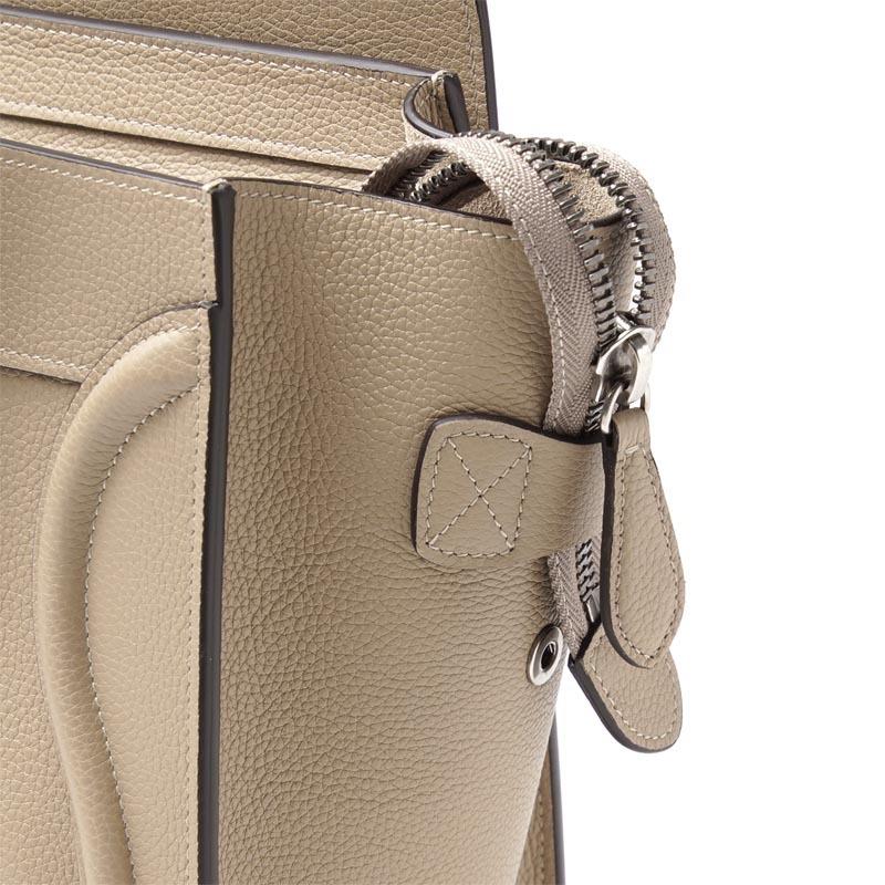 | 特徴 | ・ゴールドメタルハードウェア ・ハンドキャリー(12cm) ・ジッパー開閉 ・インナージップポケット ・ダブルフラットポケット ・フロントアウタージップポケット ・バッグの底の傷を防ぐスタッズ付き |