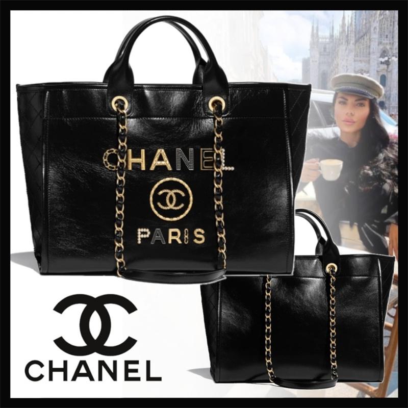 【CHANEL】シャネル☆ラージ トート カーフ 黒 CC ロゴ A66941 (59842898)