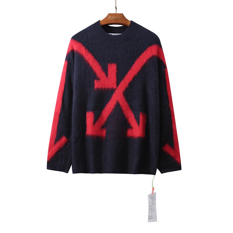 【Off-White】モヘアアローセータールーズロングスリーブカジュアルプルオーバーセーター男性と女性のための同じスタイル